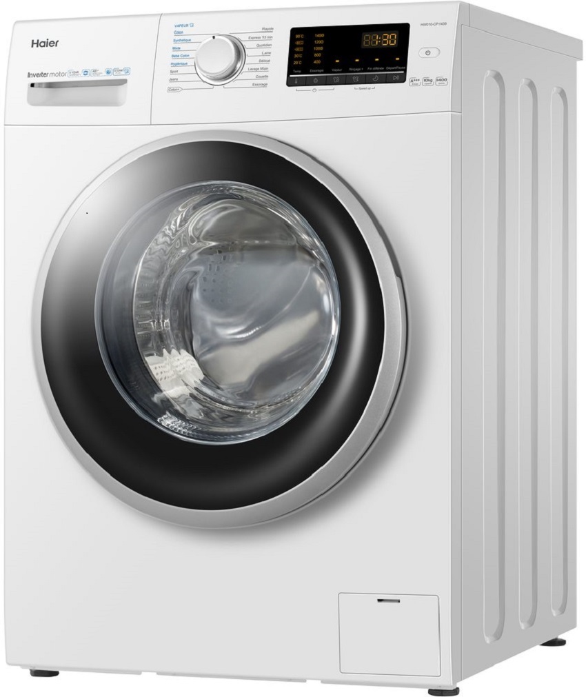 A HAIER HW70 BP1439 mosógép A+++ energiaosztállyal, 16 mosóprogrammal és Fuzzy Logic funkcióval rendelkezik, amely automatikusan leméri a dobban lévő ruhamennyiséget.
