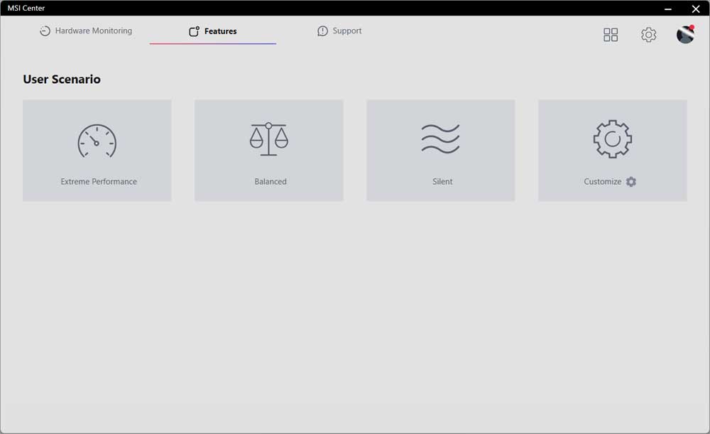 MSI Center: főpanel