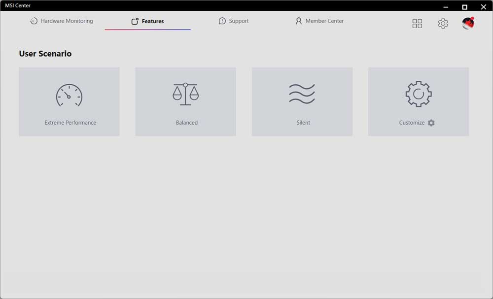 MSI Center: főpanel