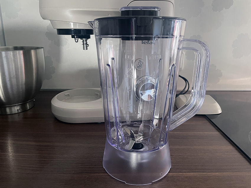 Mivel alapvetően minden nap reggelire vagy uzsonnára egy turmixot fogyasztok, számomra egyértelműen a turmixgép volt a leghasznosabb tartozéka ennek a konyhai robotgépnek. A tartálya 1,25 literes, és egy fogantyúval rendelkezik, amelyet nagyon könnyű megfogni, valamint egy levehető fedéllel és egy praktikus töltőnyílással, hogy a hozzávalókat közvetlenül beletehessük turmixolás közben. Nagy teljesítményének köszönhetően a nehezebb hozzávalókkal is megbirkózik, beleértve a jeget is, és ideális ezt a tartályt a pulzáló sebességgel vagy a 7-es és 8-as sebességgel használni. A gyártó maximum három perces egyidejű használatot javasol, és a turmixok mellett mártások, levesek, koktélok vagy akár palacsintatészták elkészítésében is segíthet.