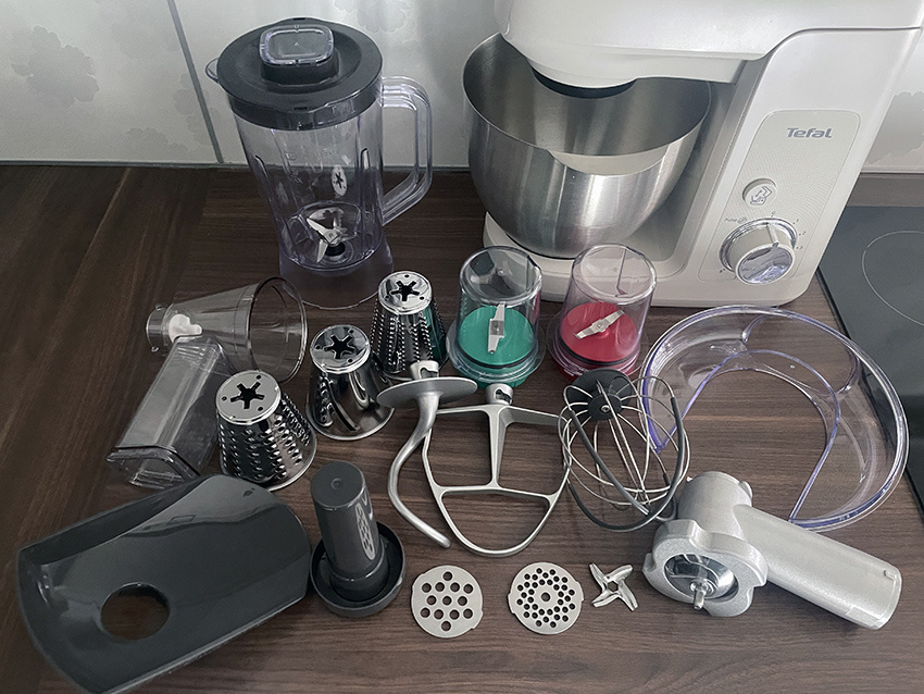 A Tefal QB525B38 Bake Partner konyhai robotgépet a tesztelés során mindenféle tevékenységre használtam - a dagasztóhorgot és a keverőlapátot sütemények sütésekor, a keverő habverőt tejszínhabveréshez, valamint az összes zöldségszeletelőt és természetesen a mixert is gyakran használtam. A férjem kipróbálta a húsdarálót, valamint az aprítót is használtuk néhányszor hagyma és fűszernövények előkészítéséhez.