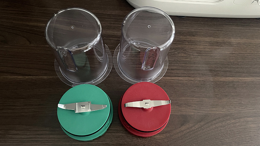 A mini aprító és őrlő szintén olyan tartozékok, amelyeket az emberek gyakran használnak a konyhában. Az aprító különösen hasznos a gyümölcsök és zöldségek aprításához, de mi leginkább hagyma és avokádó krém elkészítéséhez használtuk. Az őrlő pedig diófélék vagy kávébabok őrlésére szolgál. A mini aprítóba körülbelül 60 grammnyi hozzávaló fér, és körülbelül 10 másodpercig működtethető. Az őrlő 60-100 grammnyi hozzávalót képes befogadni, és legfeljebb 30 másodpercig szabad működtetni. Válaszd a pulzáló sebességet, amikor ezekkel a tartozékokkal dolgozol.